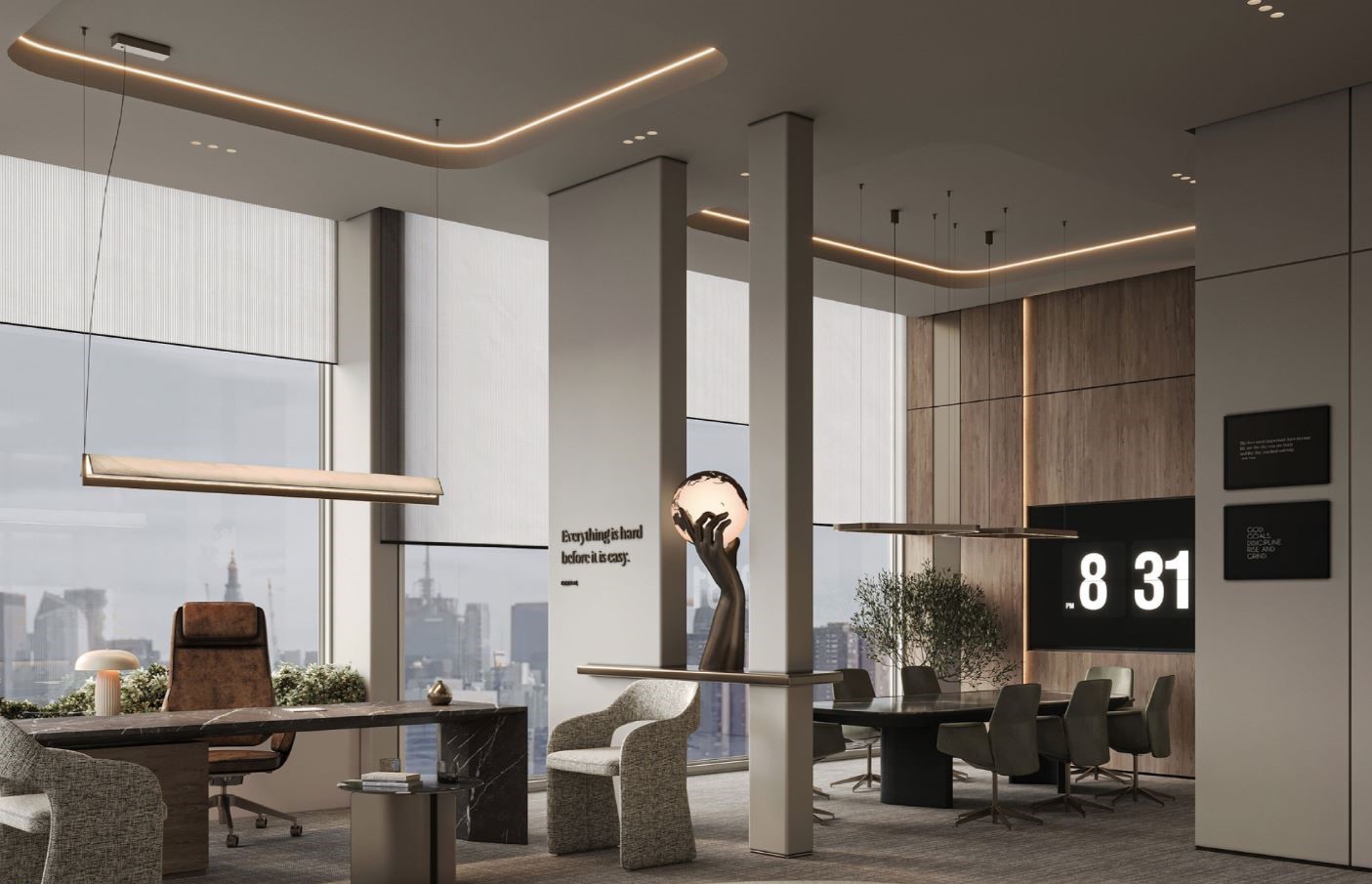 Başarının yolu, doğru kurgulanmış bir çalışma ortamından geçer. Tasarladığımız ofis projelerinde, personelin yaratıcılığını tetikleyen açık alan kurgularını, yöneticilerin prestijini yansıtan odak noktalarıyla birleştiriyoruz. Aydınlatma senaryolarından ergonomik detaylara kadar her şey, ‘her şeyin kolaylaşmadan önce zor olduğu’ bilinciyle, işinizi kolaylaştırmak için tasarlandı.