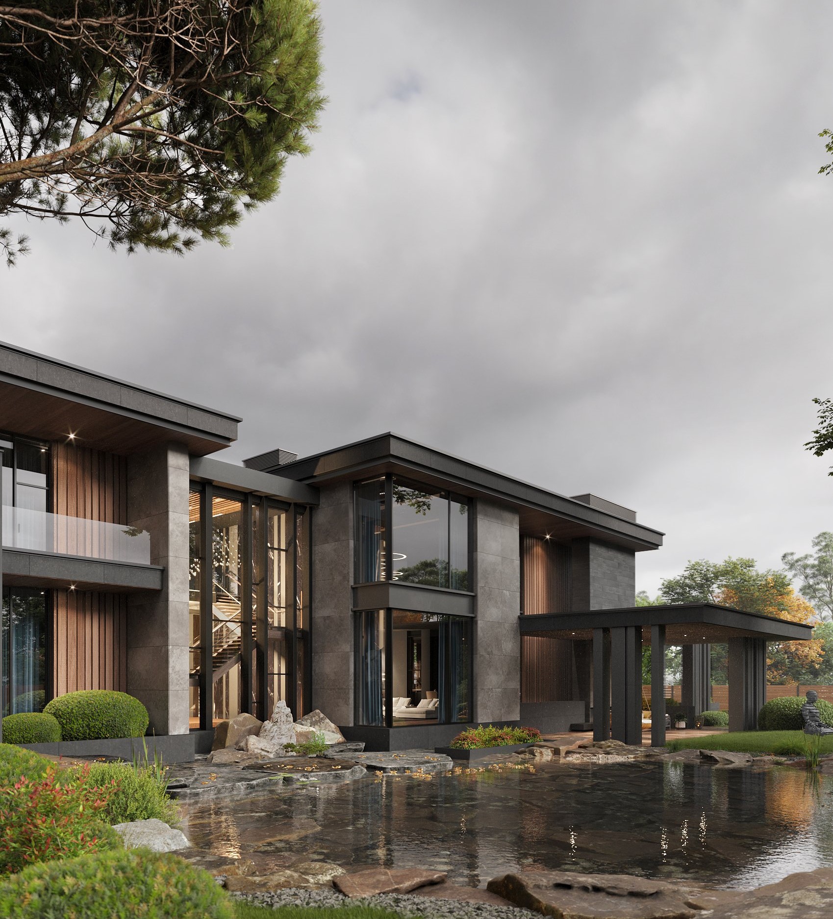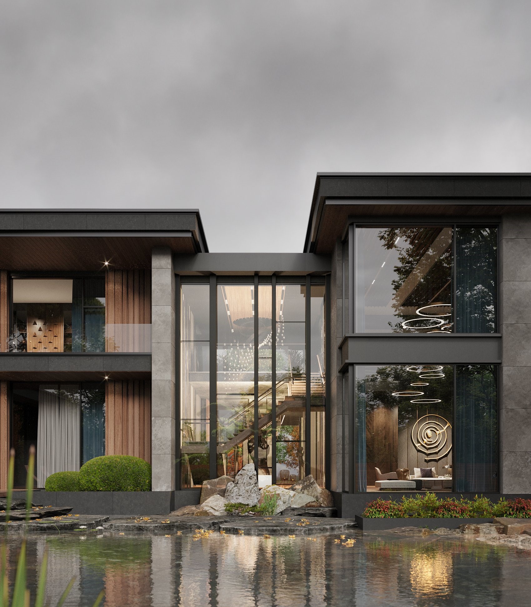 Bu proje; brüt betonun soğukluğunu ahşabın sıcaklığıyla dengeleyerek, suyun aynalık etkisiyle mimariyi bir sanata dönüştürüyor.